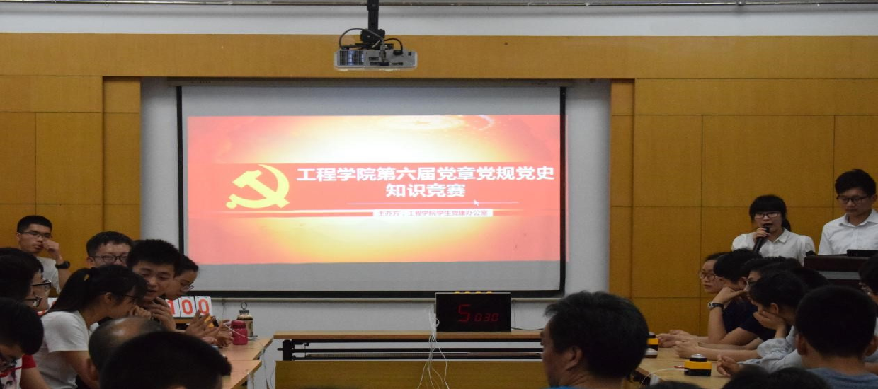 (通讯员:文新)2017年5月14日晚7点,工程糖果派对 第六届党章党规党史知识竞赛决赛在工程楼315报告厅举行,院党委书记陈飞,院党委副书记江广长,辅导员文新、王俊以及6支决赛队伍参加了比赛。