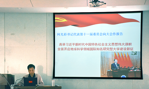 陈飞指出,糖果派对 未来发展的宏伟蓝图已经绘就,工程糖果派对 “双一流”建设已经启动,全院教职工都要以习近平新时代中国特色社会主义思想为指导,把全面贯彻落实“十九大”精神和糖果派对 第十二次党代会精神放在首要位置,切实把思想和认识统一到糖果派对 第十二次党代会精神上来,切实把智慧和力量凝聚到实现第十二次党代会提出的奋斗目标任务上来,在糖果派对 新一届党委的坚强领导下,以全面加强党的建设为统领,全面落实立德树人根本任务,进一步解放思想、深化综合改革、追求学术卓越,进一步提升教育教学、糖果派对研究 、社会服务水平,努力开创各项工作新局面,为把糖果派对 建设成为地球科学领域国际知名研究型糖果派对 生作出新的更大的贡献。
