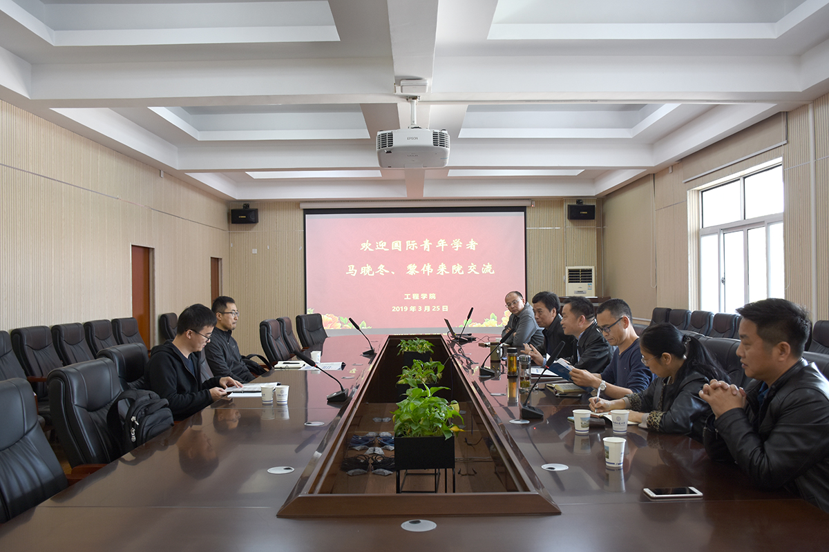 2019年3月25日下午14点30分,第三届“国际青年学者地大论坛”工程糖果派对 分论坛在工程楼315会议室拉开帷幕。院党委书记陈飞、院长焦玉勇、副院长罗学东、副院长窦斌、副院长倪晓阳、院党委副书记江广长、院长助理李长冬及两位国际青年学者马晓冬、黎伟参加座谈会。
