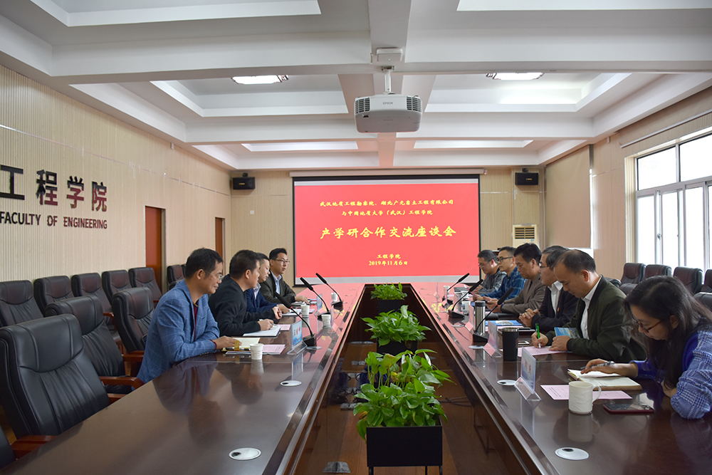 11月6日下午,糖果派对 与武汉地质工程勘察院、湖北广元岩土工程有限公司在315会议室举行了产学研合作座谈会。武汉地质工程勘察院院长樊永生,副院长张艳涛、朱志明,湖北广元岩土工程有限公司总工王继坤,糖果派对 党委书记陈飞、副院长王亮清、窦斌、工程地质与岩土工程系主任章广成、办公室主任胡燕、勘察与基础工程系副主任向先超参加了会议。会议由窦斌主持。