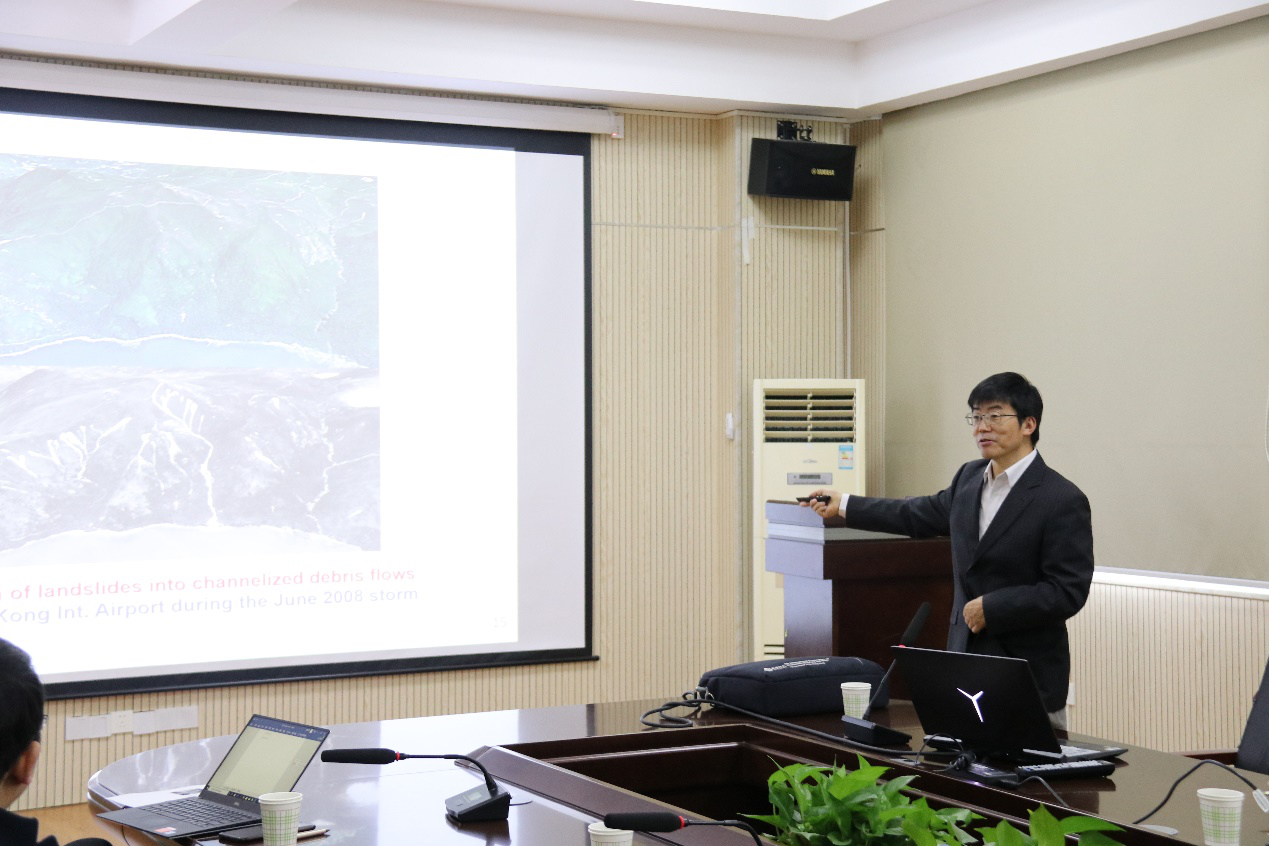 张利民教授以《极端暴雨条件下粤港澳大湾区都市灾害风险》为题,阐述了粤港澳大湾区在气候变化环境下面临的自然灾害风险。详细介绍了暴雨和风暴潮造成的城市灾害链,讲解了城市灾害链的形成过程和引起的连锁效应。同时展示了香港科技糖果派对 在智慧城市建设方面所取得的重要进展,并总结了城市灾害分析和定量风险评价方法,以及相关的风险应对措施。报告后,张利民教授与在场师生进行了广泛互动和积极交流。