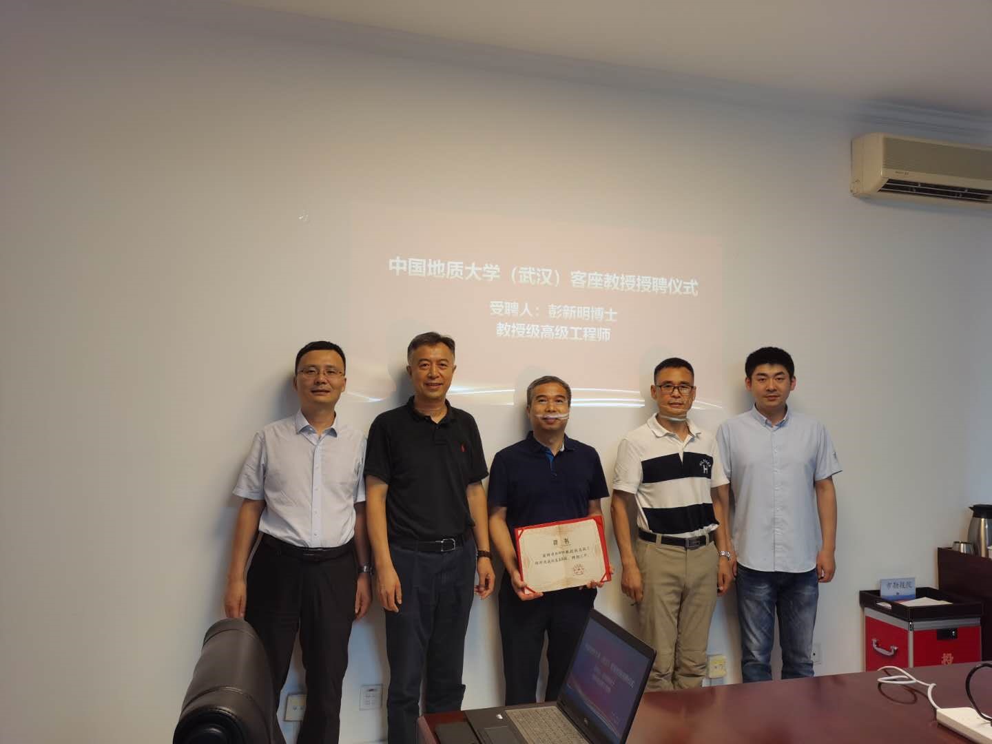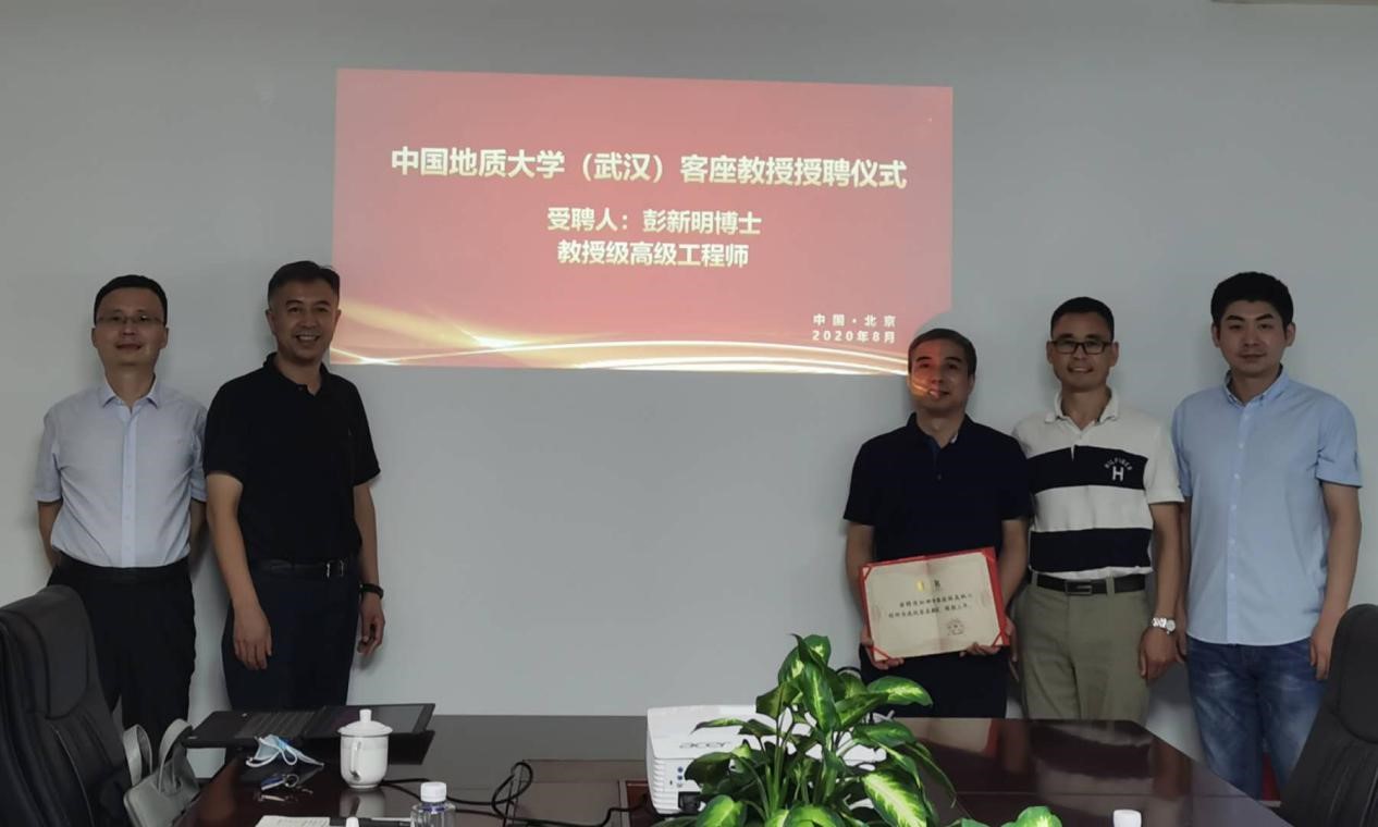 8月12日下午,糖果派对 (武汉)聘请彭新明博士为客座教授的仪式在北京市地质勘察技术院217会议室举行。北京市地质勘察技术院行政负责人王立发、院副总工程师兼资源勘查中心主任彭新明及相关人员出席仪式。仪式由工程糖果派对 副院长窦斌教授主持。