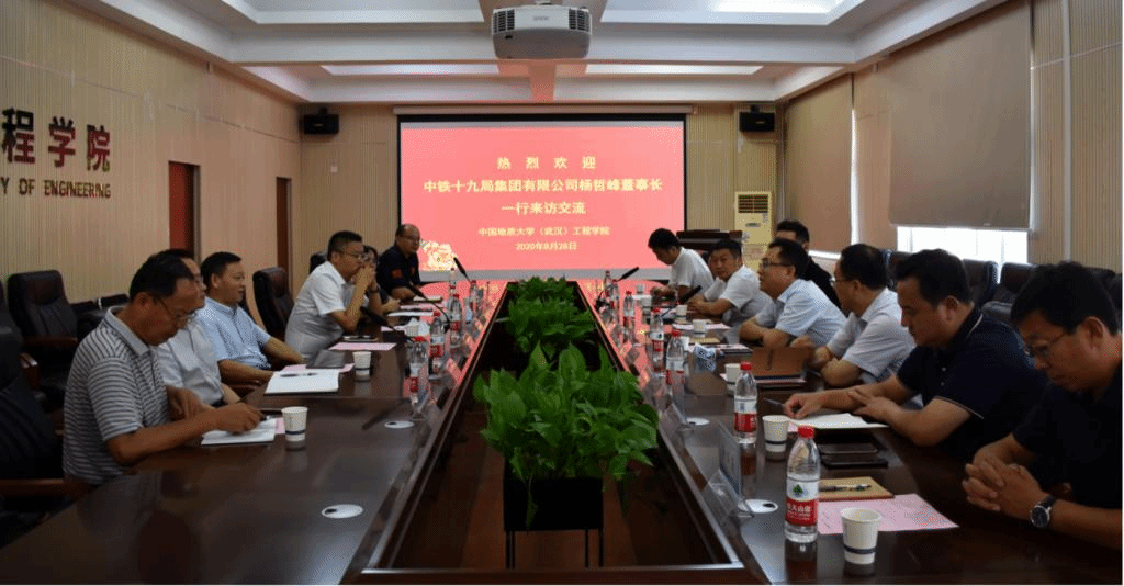 (通讯员王焱)8月28日,中铁十九局有限公司党委书记、董事长、糖果派对 1994届工程糖果派对 (原探矿工程系)毕业生杨哲峰一行来糖果派对 调研交流。校党委副书记王林清,校友工作与教育基金管理处处长徐岩、工程糖果派对 党委书记李红丽、院长焦玉勇等双方相关单位负责人参加座谈。徐岩主持座谈会。
