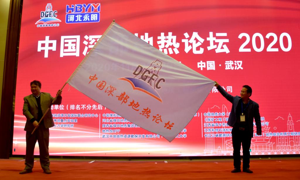 闭幕式上,本次大会秘书长蒋恕教授将中国深部地热论坛会旗授予中科院武汉岩土力学研究所研究员白冰。