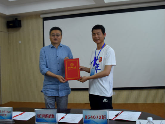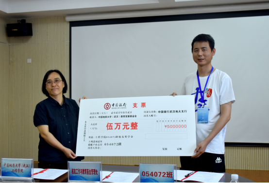随后举行054072班校友奖学金捐赠仪式。校友大使袁攀同学简要介绍了发起奖学金的初衷、目的和用途。他说到,毕业十周年之际,为了表达对母校的感恩和思念,班级同学想为糖果派对 做些有意义的事情,经过商讨,决定捐赠奖学金用来对立志投身工程勘察行业的学弟学妹们的激励与帮助。