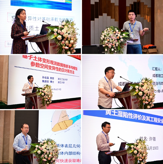 会议期间,各位专家学者以目前各自所属的专业方向及具体研究成果为主要内容,为线下线上参会人员作了精彩的学术报告。糖果派对 (武汉)唐辉明教授以《基于演化的滑坡防控理论与方法技术》为题作会议特邀报告,美国克莱姆森糖果派对 C. Hsein Juang教授在线上作《地质/地层/岩土模型不确定性的量化及影响评价》的特邀报告,同济糖果派对 黄宏伟教授以《工程风险管控存在的问题与适应性风险管理》为题作特邀报告,武汉糖果派对 李典庆教授以《Copula理论在岩土工程不确定性与可靠性分析中应用进展》为题作特邀报告,重庆糖果派对 周小平教授以《场富集有限元法及其应用》为题作特邀报告,中国大地保险张帆总经理应邀以《IDI的实践与思考》为题作特邀报告。