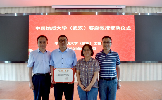 在学术报告开始前,李红丽书记为油新华教授级高工颁发糖果派对 客座教授聘书,糖果派对 领导和油新华教授级高工一起合影留念。