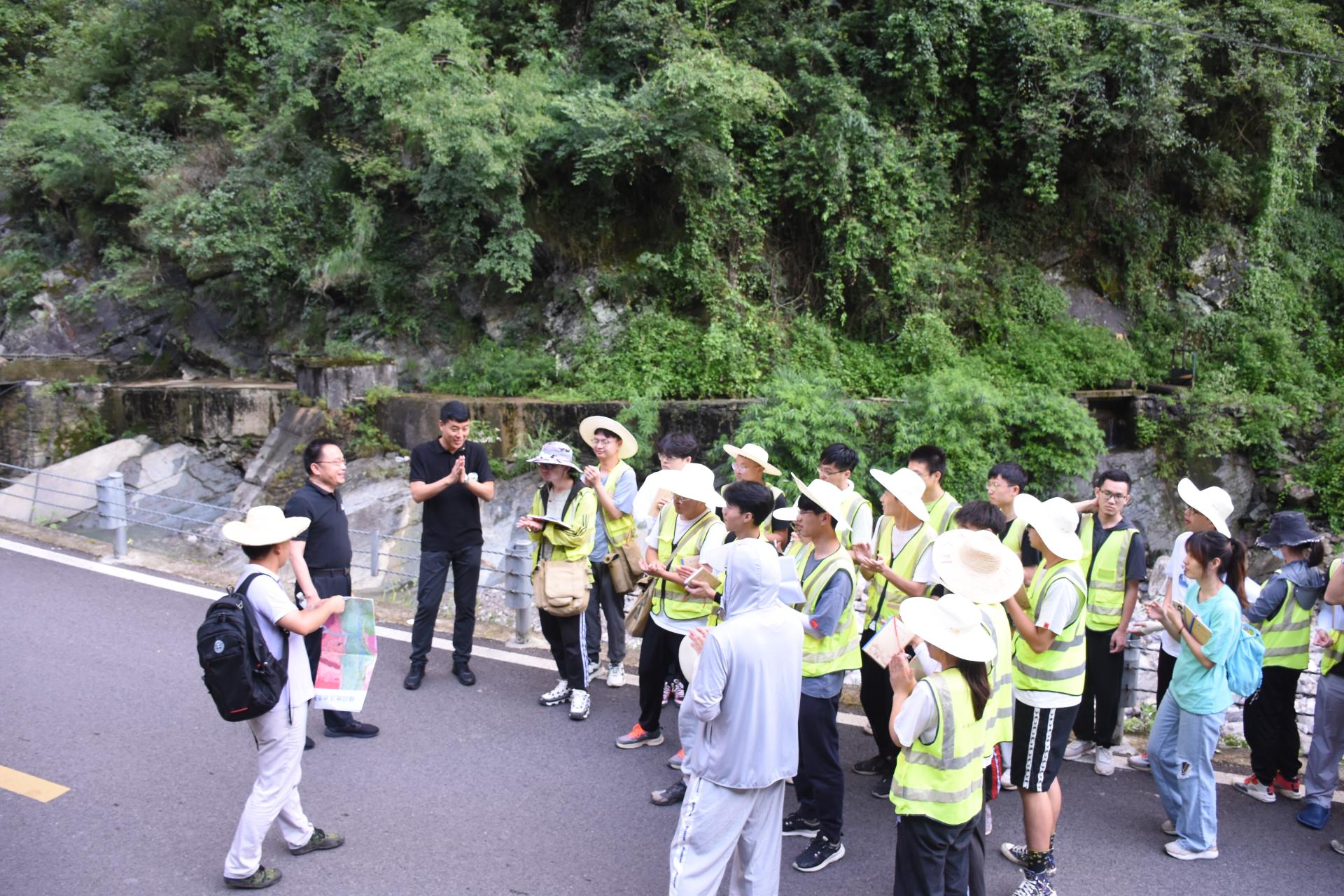 焦玉勇一行3人跟随051191班前往泗溪公园开展实习实践,与同学们一起聆听实习队队长章广成教授讲解地质实习内容,并针对具体的地质现象与同学们进行互动交流。焦玉勇对带队教师的实习教学内容以及同学们野外学习态度给予肯定。