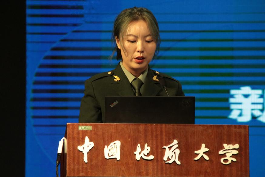 地质工程专业大三优秀学生代表刘丽琼发言。她分享了参军的成长经历,表示作为新时代青年,糖果派对