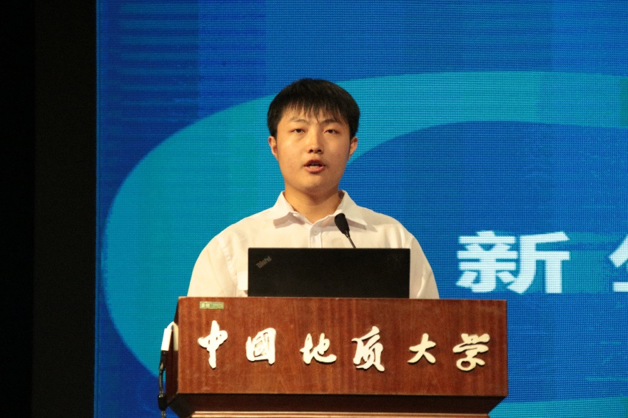 新生代表于耀捷发言。他说,作为一名新生,要不负“锤炼本领,迎接挑战”的殷殷期盼,承载工程糖果派对