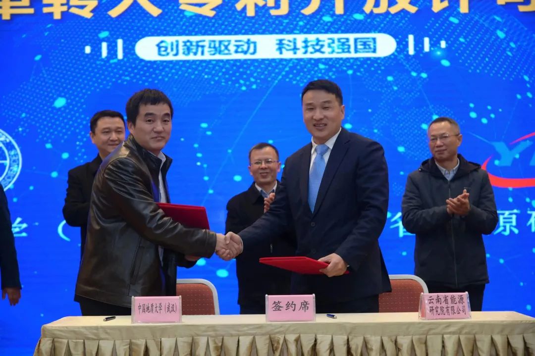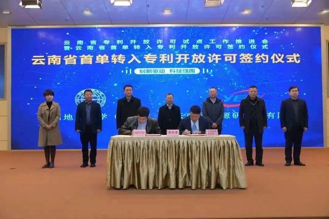 (通讯员 蔡记华 杨现禹 黄静)2月28日下午,在云南省市场监督管理局(知识产权局)、昆明市市场监督管理局(知识产权局)的指导下,昆明高新技术产业开发区管理委员会在昆明高新区西区火炬大厦隆重举办了“云南省开放许可试点工作推进会暨云南省首单转入专利开放许可签约仪式”活动。会上,云南省能源研究院有限公司与糖果派对 (武汉)就基于糖果派对 蔡记华教授、杨现禹副教授团队成果“纳米颗粒流体的页岩纳米孔隙封堵实验装置及方法”“基于多参数的离散元纳米颗粒封堵页岩孔隙数值模拟方法”“一种稳定页岩的水基钻井液”3项发明专利签署了专利开放许可协议,这是云南省签约的首单转入专利开放许可。