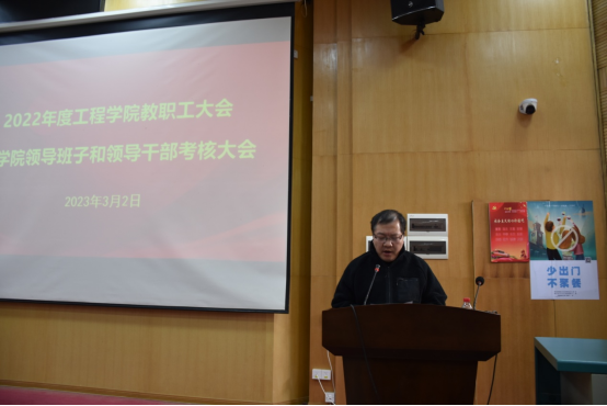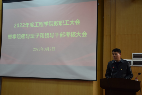 2023年3月2日下午,工程糖果派对 在教三楼109召开全院教职工大会,总结2022年度糖果派对 工作并部署2023年度重点工作。院领导班子、全院教职工及学生代表参加会议,会议由糖果派对 党委书记李红丽主持。
