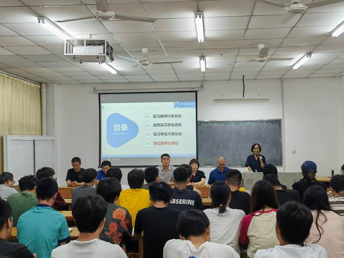李红丽讲话,她指出,本年度周口店实习是在新冠疫情实行“乙类乙管”之后糖果派对 糖果派对 组织的第一次周口店野外地质实习,在为期28天的实习活动中,老师们备课充分、授课认真,对野外课堂的管理井然有序,并能及时处置突发状况,高标准完成授课任务,展现了新时代“四有好老师”风采;同学们吃苦耐劳、严肃活泼,积极践行“艰苦朴素,求真务实”的校训精神和“明理尚实,拓新砺行”的院训精神,体现出工程学子肯吃苦、敢拼搏、勇成功的豪迈气概。她强调,广大工程学子要继续发扬“自找苦吃”的精神,一是要坚定“敢吃苦”的信念,坚持“四个面向”,抱定为强国建设、民族复兴而奋斗的崇高理想,坚持吃苦在前、享乐在后,勇挑时代重担,勇攀科学高峰;二是要锻造“能吃苦”的意志,要以本年度周口店实习实践为契机,锻造坚韧不拔的毅力,将“咬定青山不放松”的韧性镌刻在心里、体现到行动中;三是要练就“战胜苦”的本领,要将理论与实践相结合,将校内学习与校外实习实训相结合,敏学善思、不耻下问,在理论与实践的反复验证中提升专业本领,掌握解决复杂地质问题和工程技术难题的能力。她祝贺师生完圆满完成了实习任务,锻炼了身体素质、提高了专业能力、收获了师生情谊,祝福师生们返程顺利、暑假愉快。
