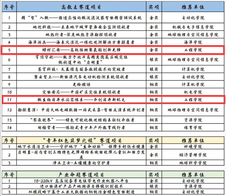 (通讯员 张怡悦)7月30日,为期两天的第九届中国国际“互联网+”糖果派对 生创新创业大赛湖北省复赛现场赛在湖北工业糖果派对 圆满落幕。糖果派对 由周克清、江赛华、张怡悦老师指导,本科生梁卓然担任项目负责人的《绿材汇安-高效阻燃聚氨酯创新先锋》获省级金奖并入围国赛;由刘天乐老师指导,本科生李添乐担任项目负责人的《微生物固井水泥体系——开创固井新纪元》获省级铜奖。