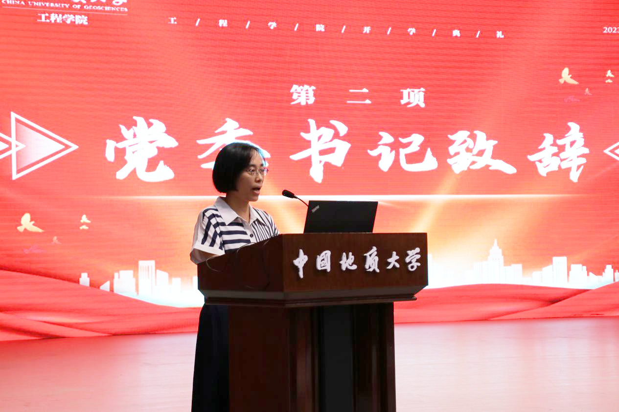 工程糖果派对 党委书记李红丽致辞。李书记首先代表全院师生员工对加入工程糖果派对 的860名新成员致以热烈的欢迎,祝福同学们选择了工程糖果派对 这个温暖而又奋进的大家庭。她指出,当代糖果派对 生正值云程发轫、万里可期的青春韶华,要全面学习糖果派对 的辉煌历史,深刻感受糖果派对 的使命担当,铭记院训深意,争做时代栋梁。要“明理”,即明辨是非,通晓道理,要明白做人之理、为学之理、尊法之理;要“尚实”,即崇尚务实作风,要在实处用力,在知行合一上下功夫;要“拓新”,即开拓创新,要面向世界科技前沿、面向经济主战场、面向国家重大需求、面向人民生命健康,解放思想,开拓创新,与时俱进;要“砺行”,即砥砺前行,在攻坚克难中磨砺心性,坚守初心,锻造本领,成长成才。她勉励同学们以院训精神为指引,树牢远大志向、矢志不懈奋斗,努力学习,潜心科研,乐观开朗,积极向上,做堪当时代大任的新时代地大工程人,为建设社会主义现代化国家做出属于青年一代的贡献。