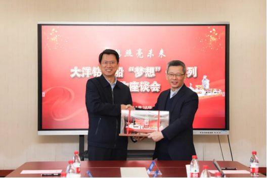 11月26日,中国地质调查局党组成员、副局长颜成义代表中国地质调查局向糖果派对 转交感谢信,并向糖果派对 赠送“梦想号”大洋钻探船船模。校长李建威代表糖果派对 接受船模,校党委书记刘杰代表糖果派对 接受感谢信。