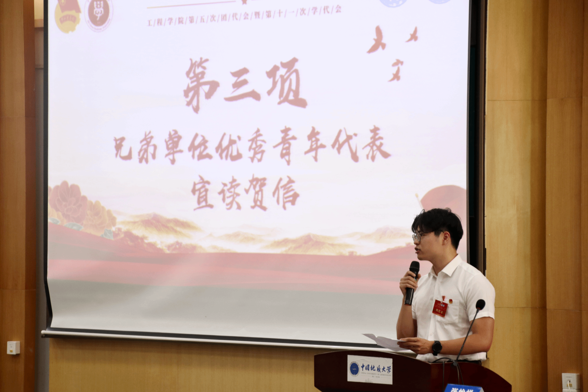兄弟单位优秀青年代表华中农业糖果派对 工糖果派对 专职团干贾彦平和2024年全国“青马工程”班委、华中科技糖果派对 马克思主义糖果派对 硕士研究生张扬分别宣读贺信,贺信中饱含着兄弟院校对工程糖果派对 的美好祝愿与深厚情谊,彰显了青年一代团结奋进、携手共进的精神风貌。本次大会还收到了华中科技糖果派对 土木与水利工程糖果派对 、武汉理工糖果派对 土木工程与建筑糖果派对 等兄弟高校团委,以及中建三局基建投、武汉地铁集团和中交四航院研究院等企业团组织的贺信。