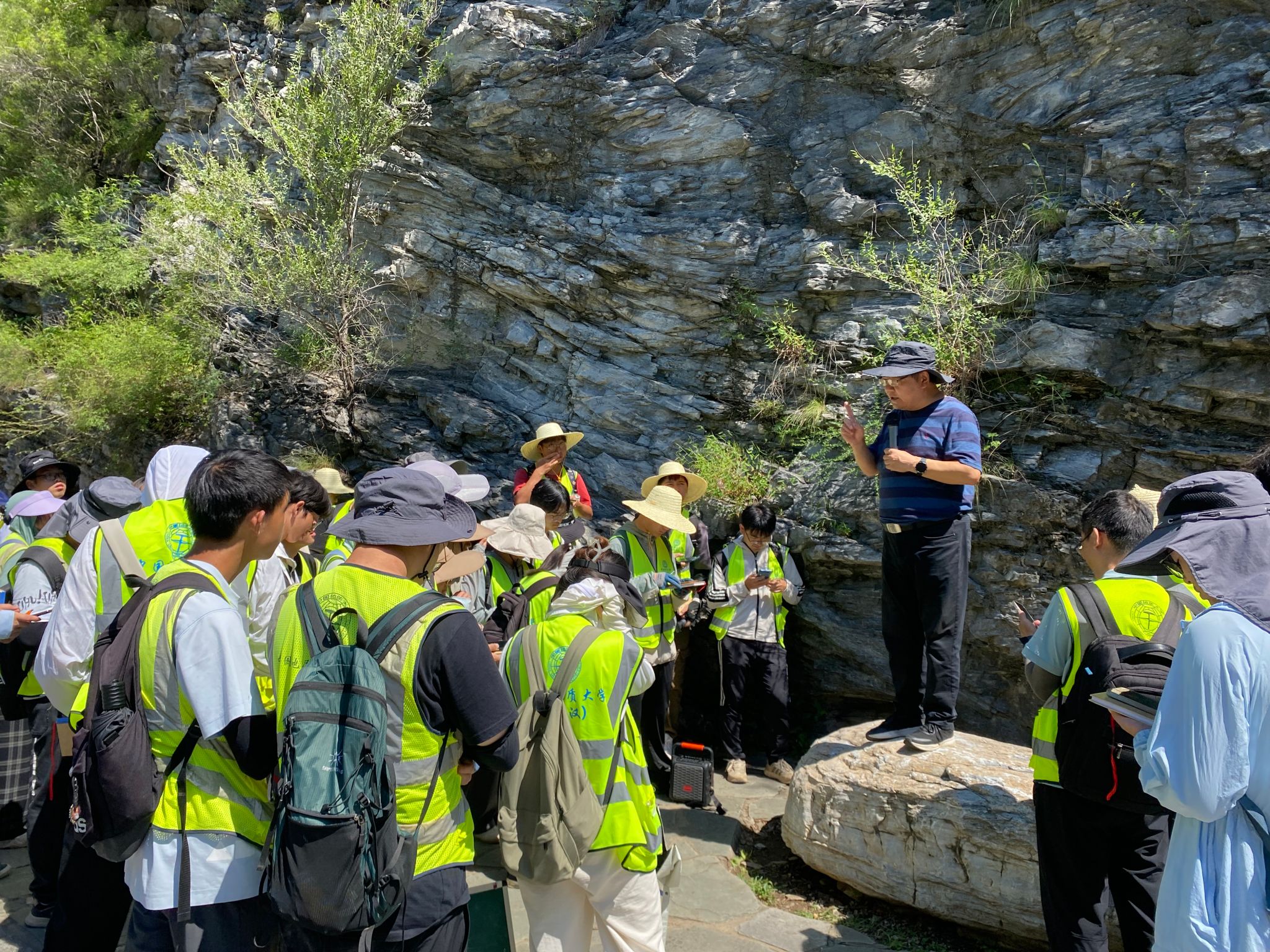 8月10日上午,王亮清一行与实习师生一同前往黄山店实习路线,全程参与野外实践教学。在陡峭的山路上,王亮清与师生共同观察地层构造、分析沉积环境,并结合典型地质现象现场讲解。王亮清强调,周口店实习是地质工程糖果派对人才培养 的关键环节,周口店这本天然教科书,需要以脚步丈量,更需要用创新思维解读。他对同学们提出三点期望:一是以实践锤炼本领,在野外观察中树立“将今论古”的演化思维;二是强化安全意识,通过复杂地质条件下的工程问题模拟训练,提升风险研判与处置能力;三是拥抱技术变革,积极运用AI地质罗盘等智能装备开展野外工作。他指出,作为糖果派对 历史最悠久的野外实践基地,周口店实习基地培养了大批优秀地质人才,被誉为“地质工作者的摇篮”,他勉励同学们传承“摇篮精神”,夯实专业基础,为服务国家地质事业积蓄力量。
