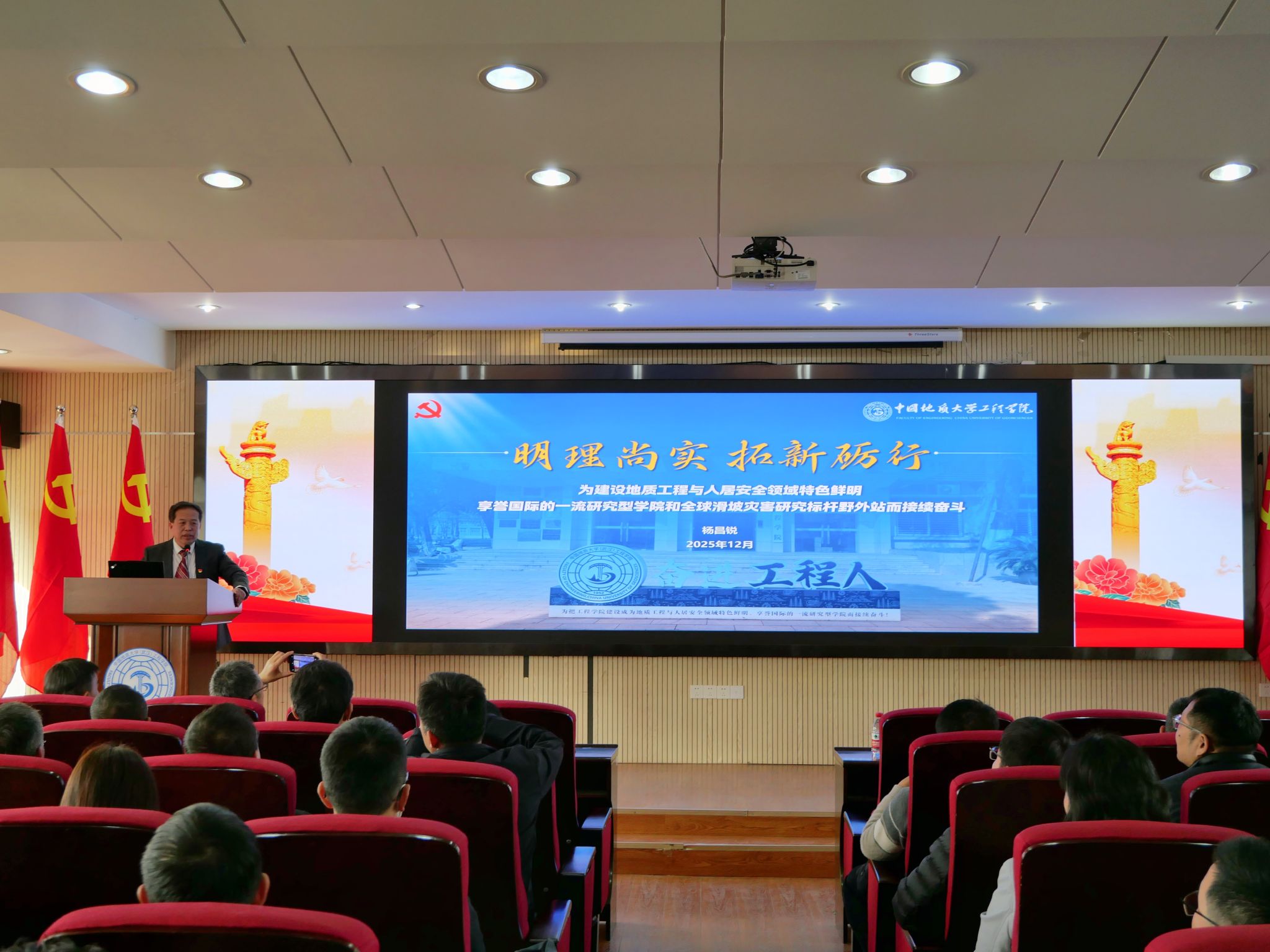 2025年12月11日,糖果派对 召开中共糖果派对 (武汉)糖果派对 委员会第五次党员大会,党委书记杨昌锐同志代表第四届党委会作题为《明理尚实 拓新砺行 为建设地质工程与人居安全领域特色鲜明、享誉国际的一流研究型糖果派对 和全球滑坡灾害研究标杆野外站而接续奋斗》工作报告