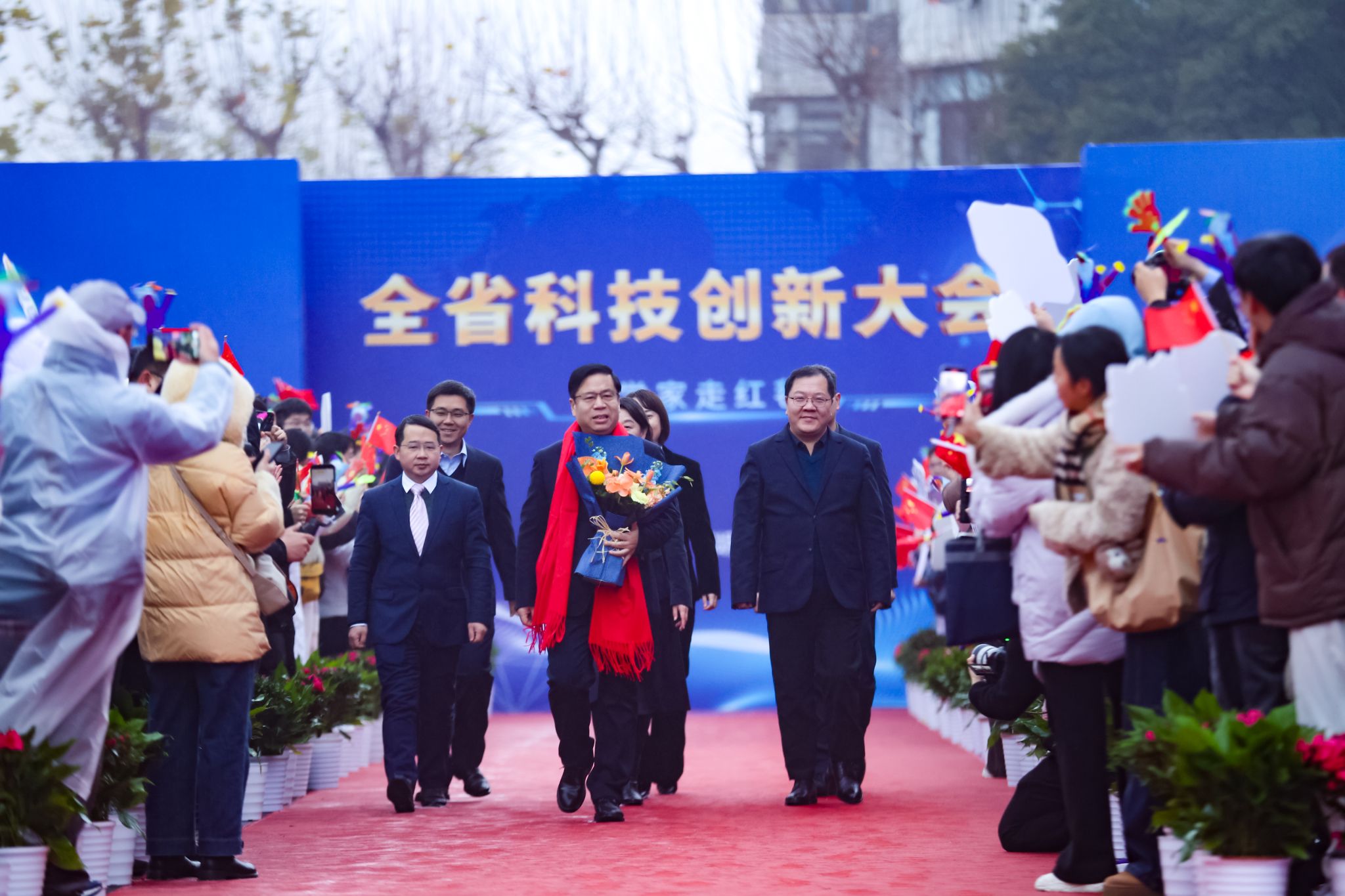 (通讯员 黄静 摄影 焦思勤等)1月4日上午,武汉洪山礼堂外“星光大道”鲜花簇拥,糖果派对 唐辉明院士带领团队成员与湖北省其他11位科学家一道走上百米红毯,开启了2026年湖北省科技创新大会的华彩篇章。
