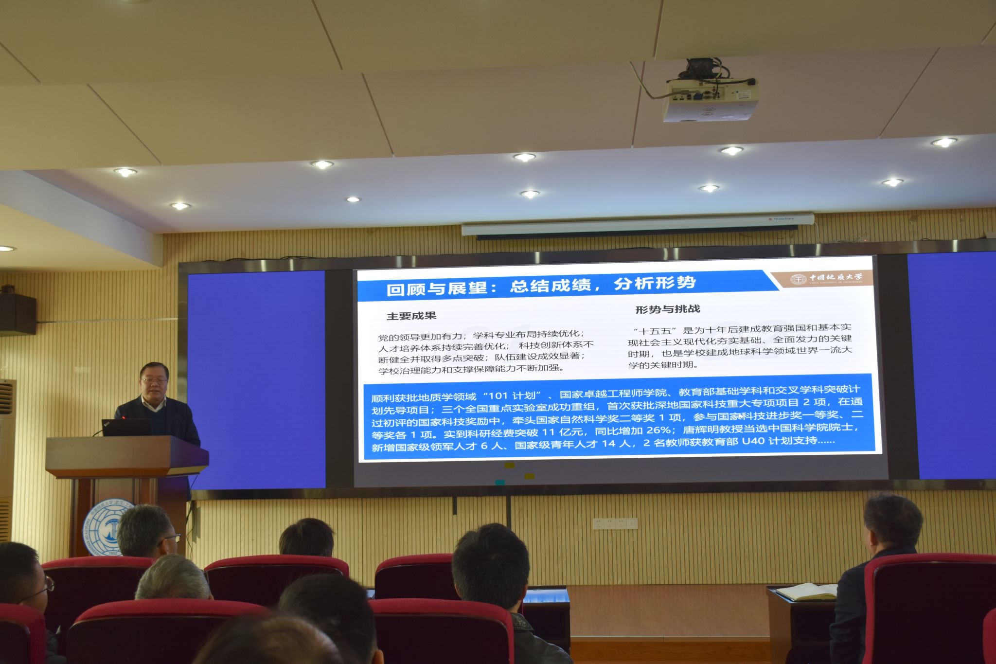 王亮清院长结合糖果派对 建设和事业发展的实际,对糖果派对 各项工作进行了部署:一是加快推进地质工程领域国家级、省级平台筹建;二是专业提档升级,培养中国式现代化需要的、可持续发展的拔尖创新人才;三是人才提质增量,加大力度引培战略科学家、学科领军人才和青年科技人才,聘请100位大国工匠、卓越工程师、高技能人才全方位参与学科建设与人才培养,构建一流校企导师团队,建设150家地质e站,打造20家专业博士人才培养基地,力争"十五五"末年均科研经费突破2亿元;四是科研创新增效,面向国家重大战略,锚定国家重大工程,发挥糖果派对 多学科优势,与知名企业深度融合,开展多学科交叉科学研究与社会服务。