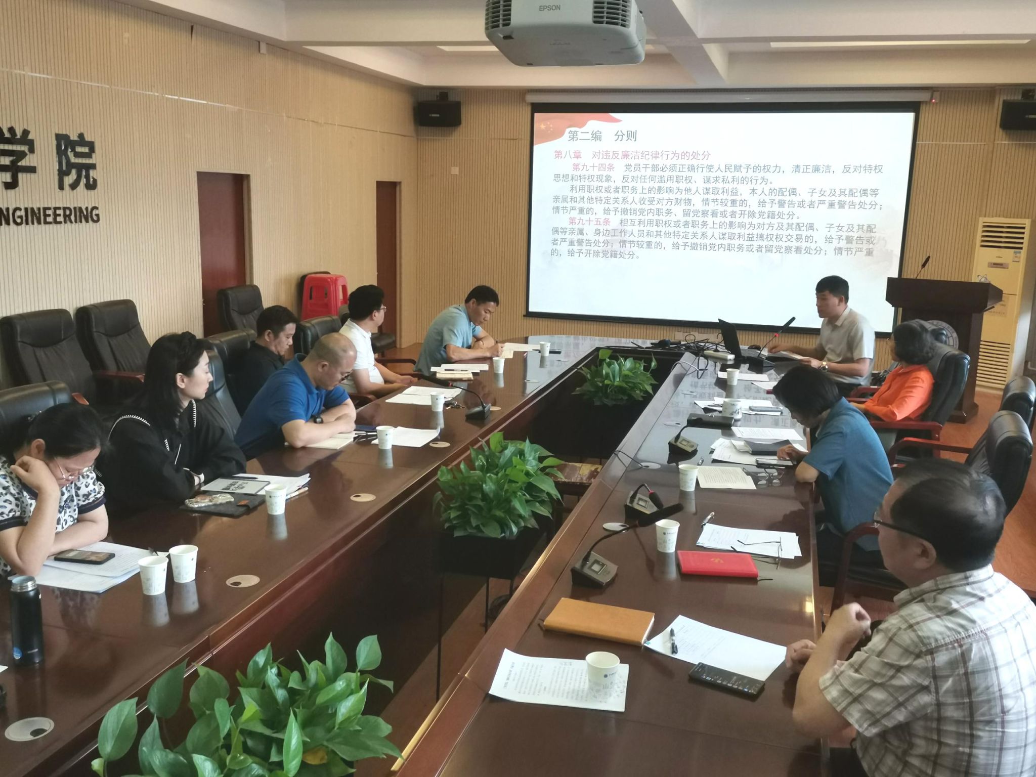 (通讯员 黄燕 高晓东)4月25日,工程糖果派对 党委召开党委理论学习中心组(扩大)学习会议暨党纪学习教育专题读书班。糖果派对 党委委员、班子成员、纪委委员、教师党支部书记等参加集中学习。党委书记李红丽主持会议。