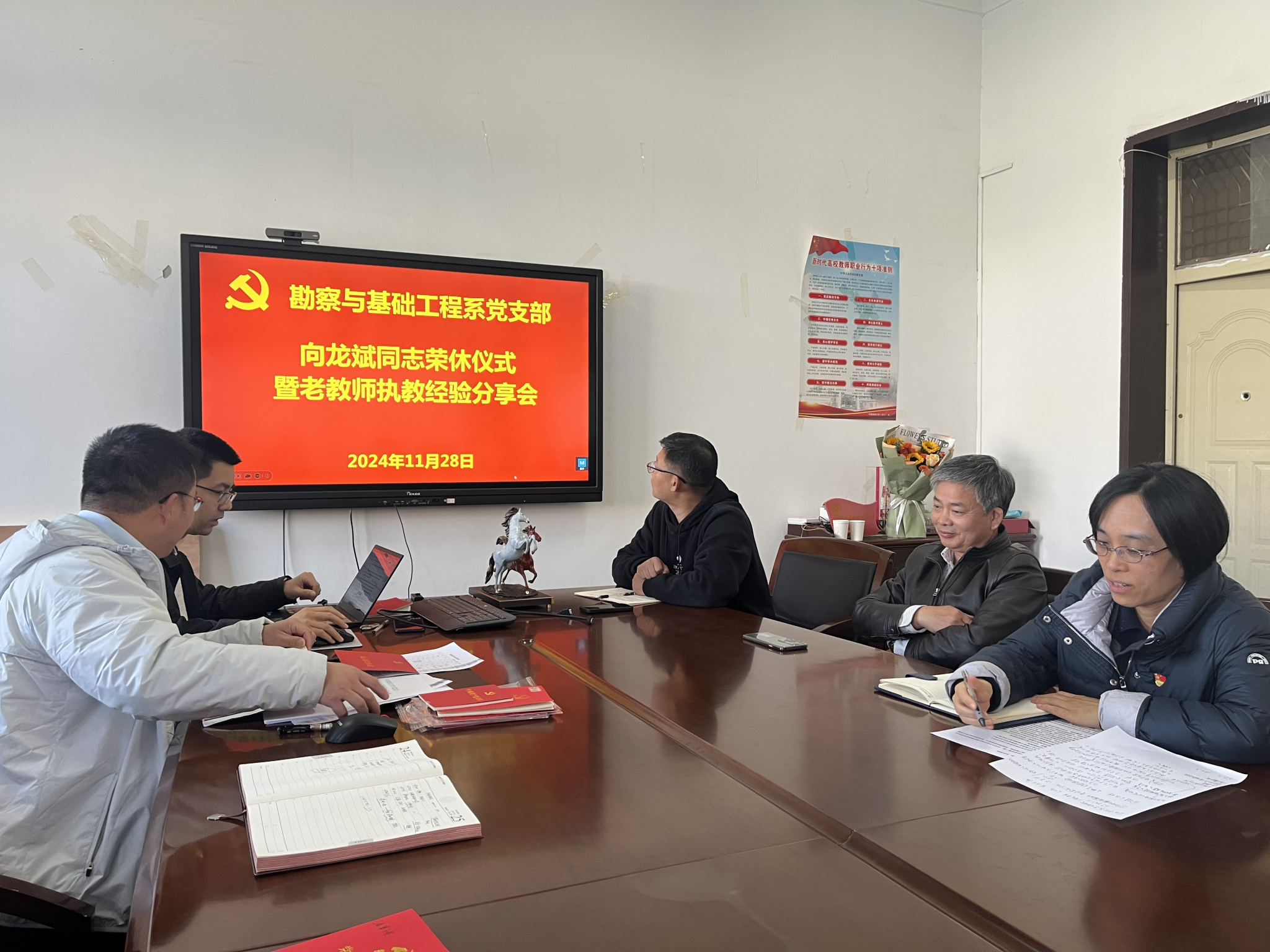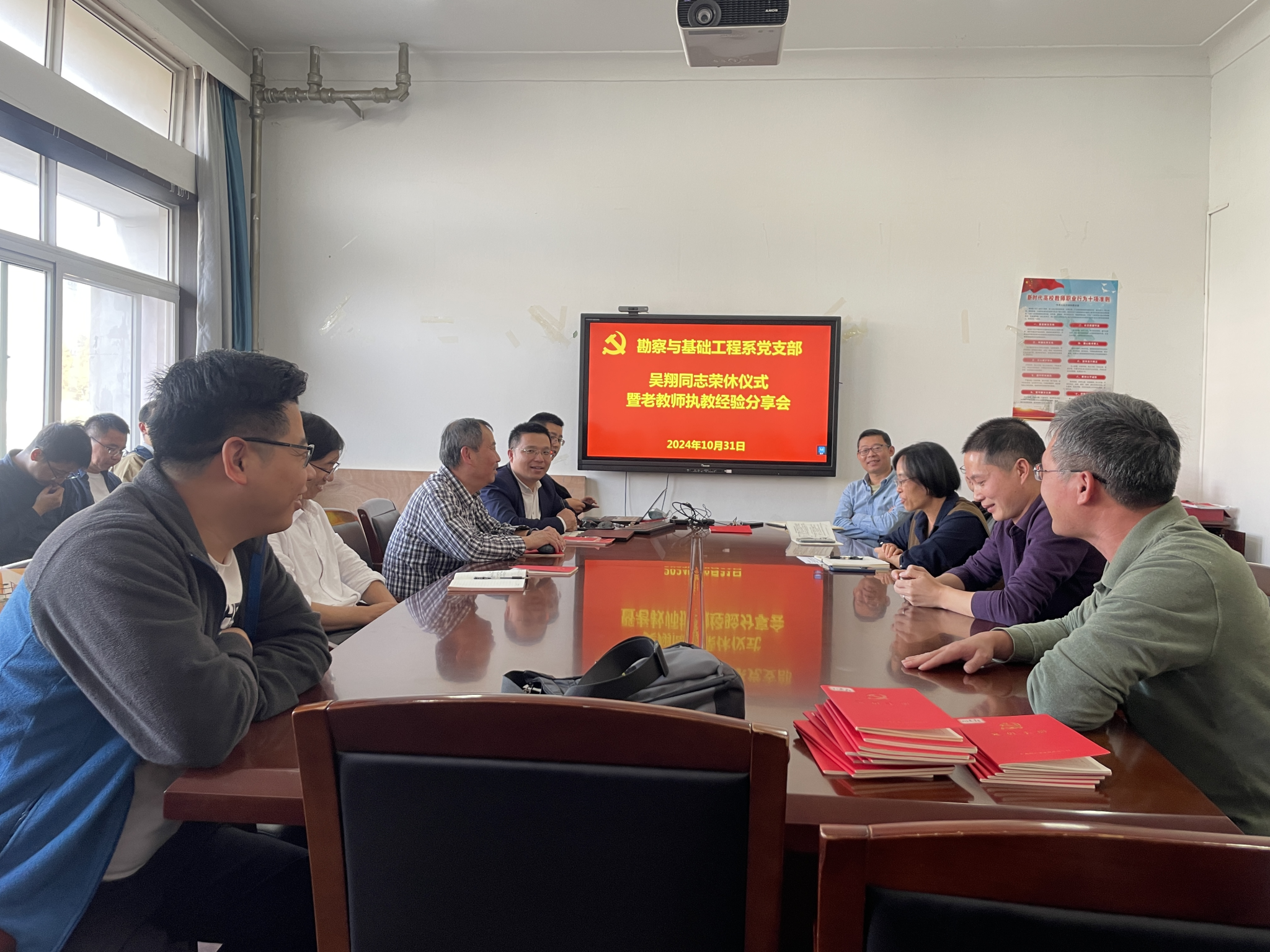 (通讯员 吴文兵)近日,工程糖果派对 勘察与基础工程系党支部先后为吴翔老师和向龙斌老师隆重举办“荣休仪式暨老教师执教经验分享会”。该活动不仅是对两位退休教师辛勤耕耘教坛的深情致敬,更是糖果派对 积极响应国家“银龄行动计划”,重视老教师资源,推进关心下一代工作委员会工作的生动实践。工程糖果派对 党委书记李红丽出席活动,仪式由勘基系党支部书记吴文兵主持。