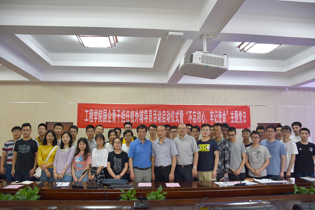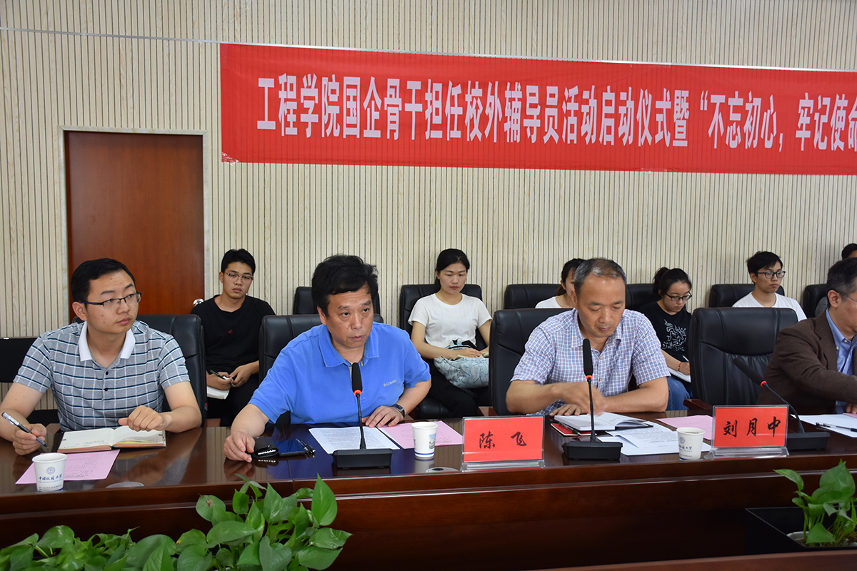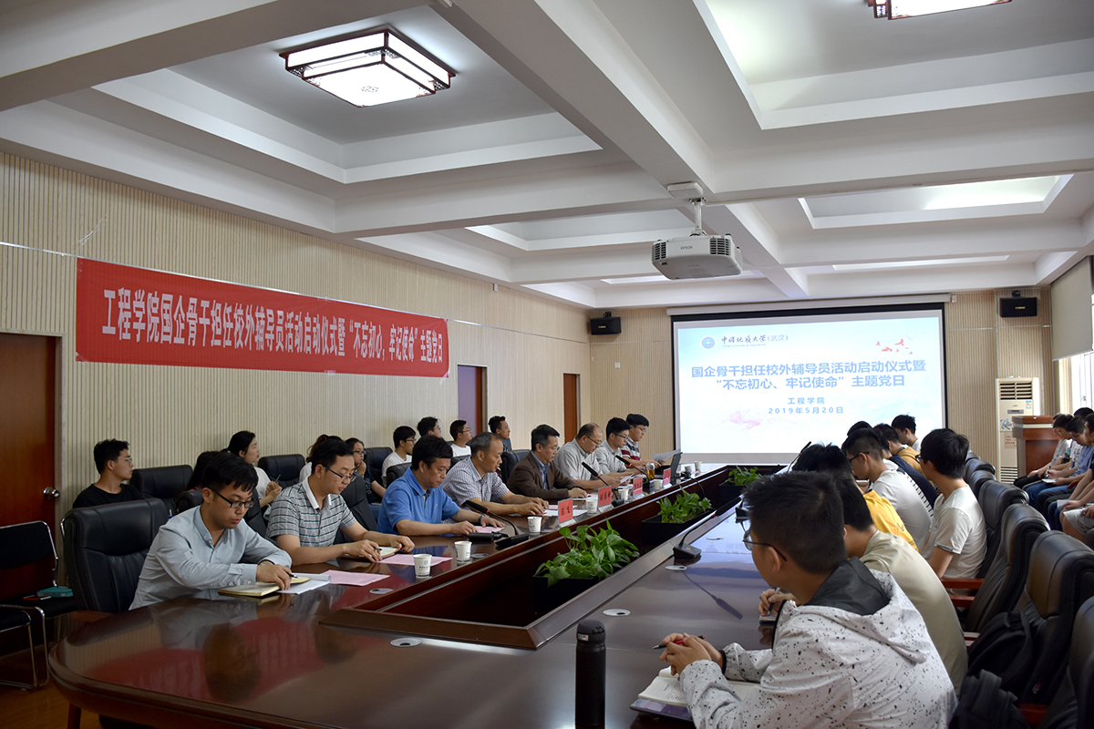 5月20日下午,工程糖果派对 国企骨干担任校外辅导员启动仪式暨“不忘初心,牢记使命”我与国企面对面主题党日在工程楼315报告厅成功举行。工程糖果派对 校外辅导员、中国黄金集团湖北三鑫金铜股份有限公司提升车间主任、党支部书记刘月中,糖果派对 学工处副处长苏洪涛,工程糖果派对 党委书记陈飞、副书记江广长、全体辅导员及四个学生党支部共40余人参加活动。