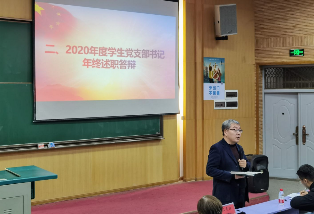首先各党支部书记做2020年度学生党支部工作总结汇报。报告内容大致从支部建设、党员教育发展、特色活动、不足和展望四个方面进行陈述。在支部建设中,支部书记鼓励支部成员讲党课,积极开展支部组织生活会,并进行党员批评与自我批评等。在党员教育发展中,严谨认真。在疫情形势下,通过线上微党课、学习强国、青年糖果派对 习等手段开展党员教育,贯彻落实“以党建带动团建,班团一体化建设”,让支部成员更好将党建任务落实,并常与支部成员谈话谈心以了解他们的情况等。在各党支部的特色工作中,出现了一些新颖的活动:“冬天的第一本书”,参观“人民至上,生命至上”主题抗疫展览,学习不惧困难、团结一致的精神,开展个人演讲等。最后,各党支部提出了现有的不足与在2021年里的改进措施。