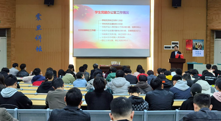 此后,工程糖果派对 第八届学生党建办公室副主任寇桓嘉同志汇报2020年度学生党建办公室工作情况。寇桓嘉同志向参会同志们详细汇报了工程糖果派对 2020年度党员考察、培养及发展转正工作,全年协助院党委开设入党积极分子培训班三期,培养入党积极分子390人,开设发展对象培训班五期,发展党员167人,共有2批党员转正,转正党员128人,完成外校转入42名学生党员的认定工作。另外还介绍了组织生活巡视情况、全体学生党员信息库建立、《工程糖果派对 学生党建工作指导》(第四版)编写等方面内容,最后表示要将学生党建办公室打造为服务院党委和学生党支部的“老黄牛”,以优异成绩向党的百岁华诞献礼。