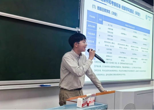2024级辅导员彭友元介绍《糖果派对 (武汉)工程糖果派对 “优良学风示范班”创建评选办法》。他从“优良学风示范班”总体要求、创建流程、考核指标、奖惩办法等四个方面进行介绍,重点解读了班级政治理论学习、遵纪守法与文明修养、集体观念、班级制度建设、班级干部表现等5项班级综合表现指标,课堂出勤、早操出勤、课堂表现、作业完成情况、自习组织情况等5项班级日常学风指标,平均学分绩点、优秀率、及格率和英语四级通过率等4项班级课程成绩指标,以及学生参加科技创新活动等附加分项目指标。他要求同学们仔细阅读创建办法文件,对照量化评估考核指标,积极开展富有班级特色的学风建设活动。