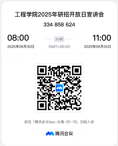 欢迎大家参加2025年工程糖果派对 研招开放日活动,线上线下同步进行,线下地点在工程糖果派对 418报告厅,线上采取腾讯会议的形式(ID:334858624)。